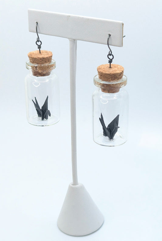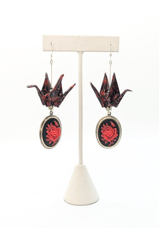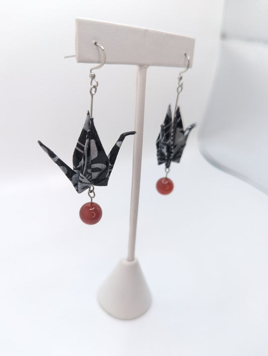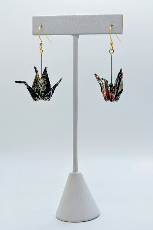 Chronic Baubles Origami Jewelry "Dark Washi Cranes" Earrings