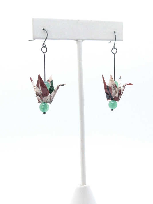 Chronic Baubles Origami Jewelry "Green Aventurine Cranes" Earrings