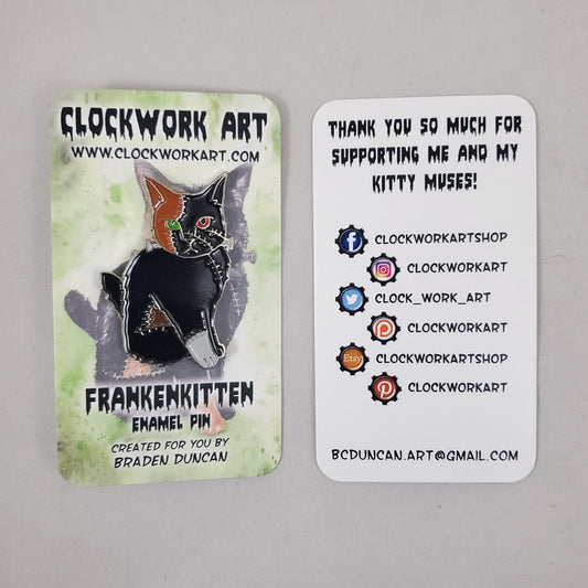 Clockwork Art "Skelekitten" Glow in the Dark Enamel Pin