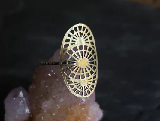 Anillo con escudo de telaraña de encaje de latón verdilune