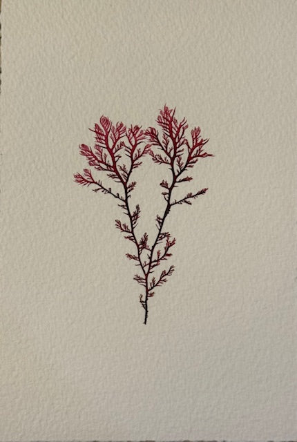We create pressed seaweed art using only what the Salish Sea offers. Every piece is made from 100% seaweed pressed onto archival watercolor paper — no dyes, no additives, only what washes up on the wrackline.