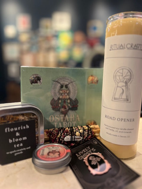Usted (¡o un ser querido! Esto realmente lo convierte en un regalo increíble) recibirá una combinación única de tesoros: vela hecha a mano, baraja de Tarot u Oráculo, alfiler esmaltado, libro de arte, impresión artística, joyería hecha a mano, té de hierbas, incienso, cristales y más.