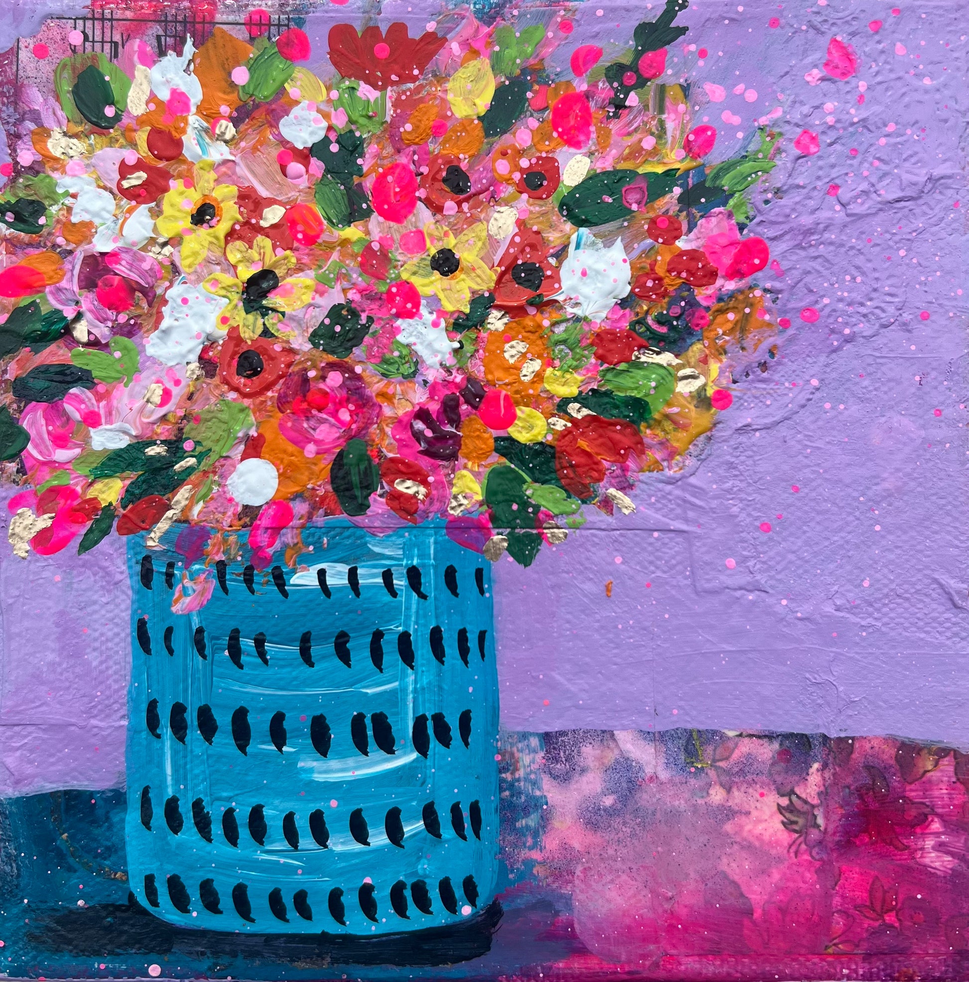As a mixed media artist with roots in India, my work is a unique fusion of traditional and contemporary elements, reflecting my cultural heritage and personal experiences. Whether I’m painting vibrant abstracts, florals, or inspirational quotes, my work is always influenced by radiant color, rich layers of texture, and deep jewel tones that are a reflection of being born into a culture that is rich with festive and celebratory color.