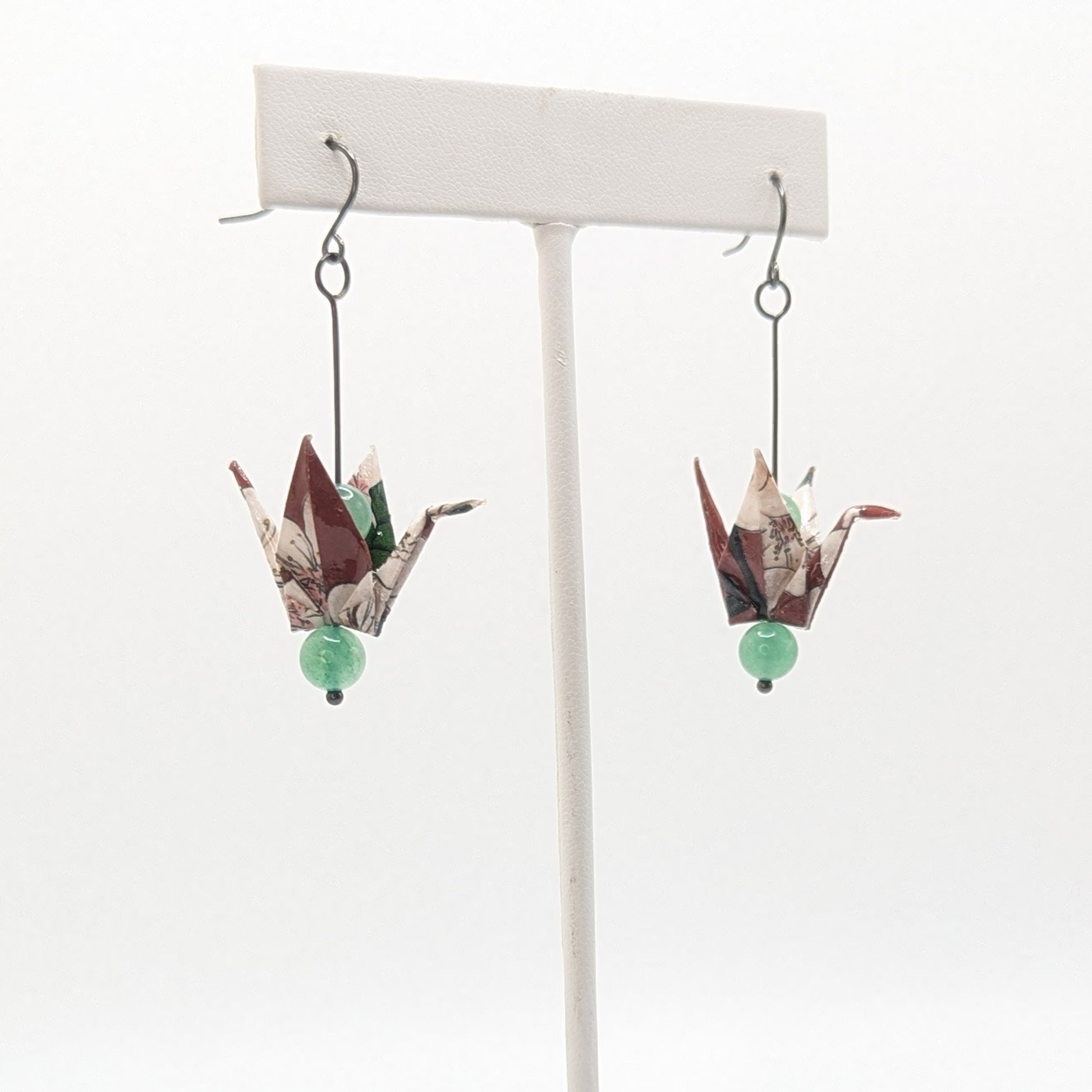 Chronic Baubles Origami Jewelry "Green Aventurine Cranes" Earrings