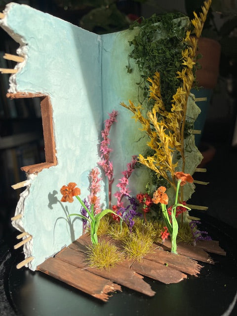 Mixed media: cardboard, plaster, paper, acrylic paint, wire, wood