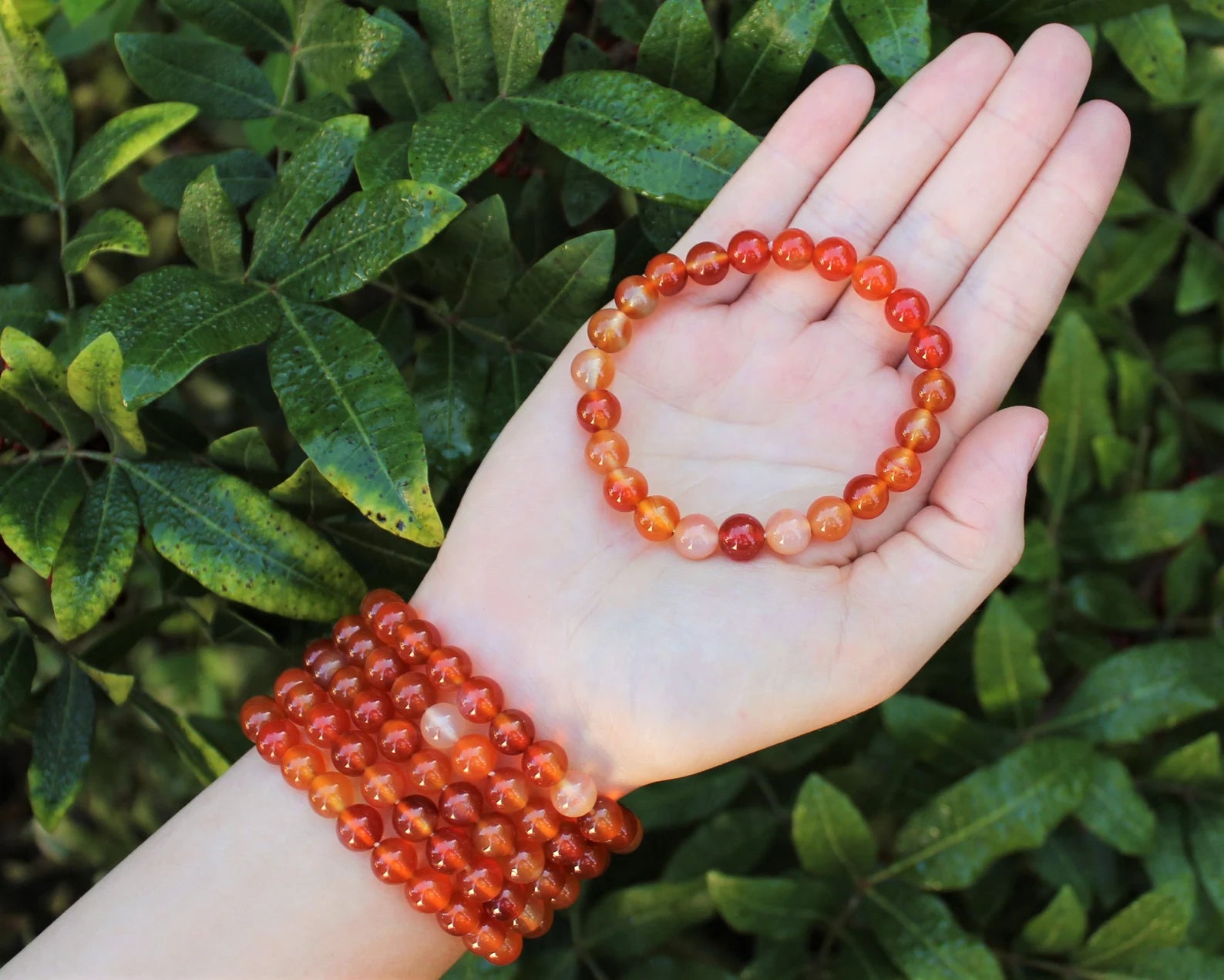 A beautiful bracelet crafted from Carnelian tumbled stones. 6 mm thick nuggets on a stretchable bracelet, fits most wrists. About 7.5" in size. Great for meditation, healing, Reiki or simply wearing!
