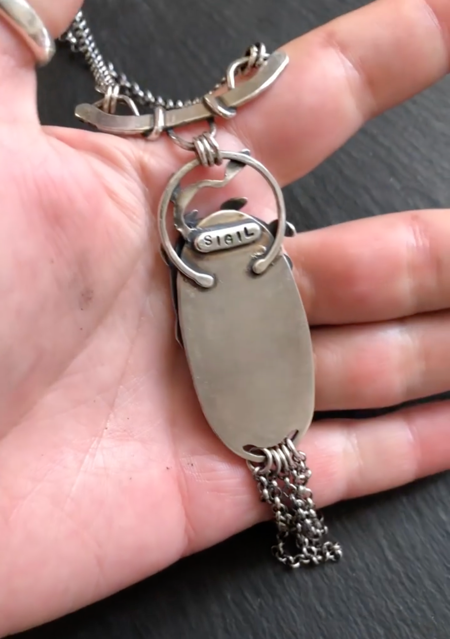 Hand-fabricated in sterling silver with an 18.5" adjustable chain. One of a kind!