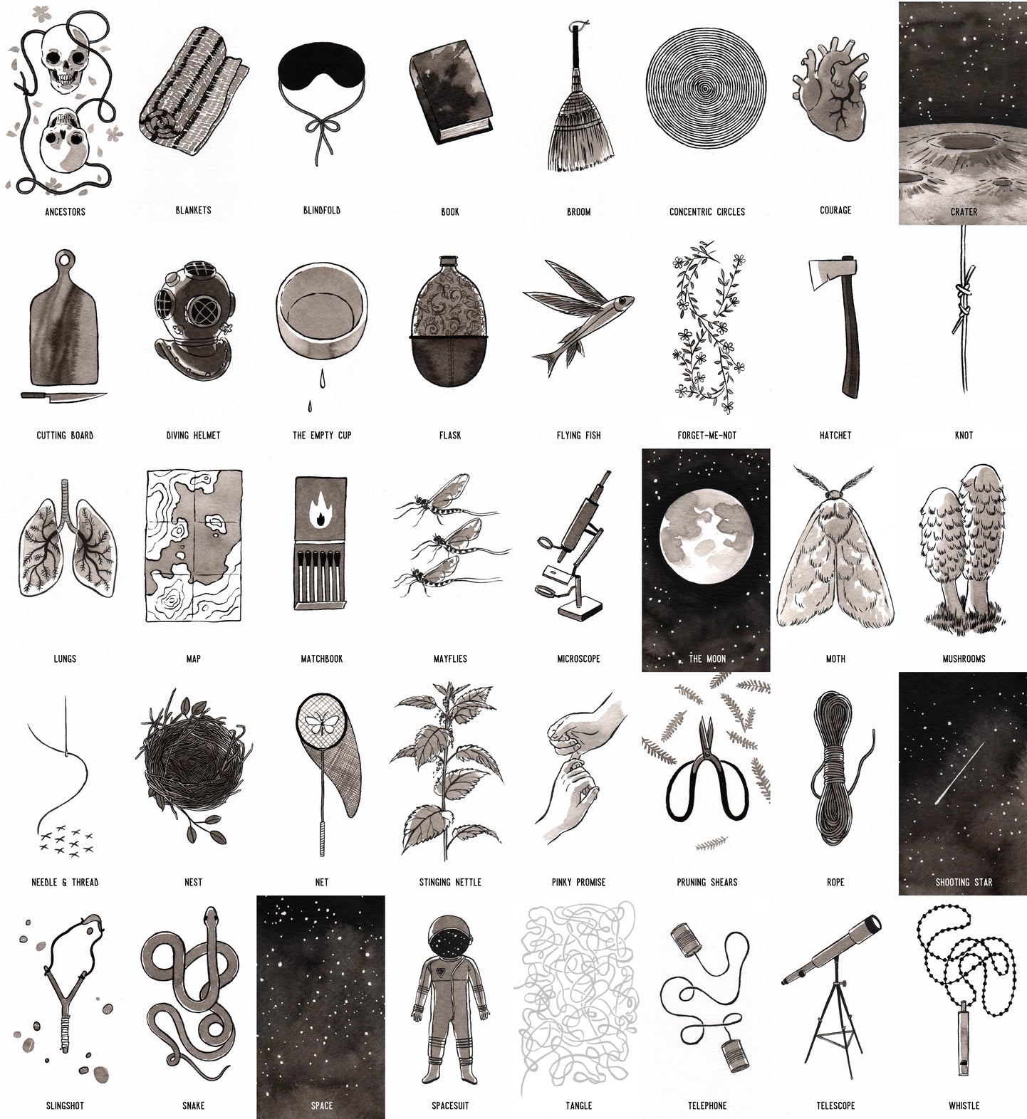 "I intend these cards to function as a sort of compass, to help you listen to yourself and what you really need in the moment. The messages in these cards are things you already know, but if you’re anything like me, reminders are nice. The symbolism and iconography are inspired by growing up as an Asian-American in the Pacific Northwest, playing in the woods and in the dirt, looking up at the stars, falling, getting hurt, getting up and falling again."