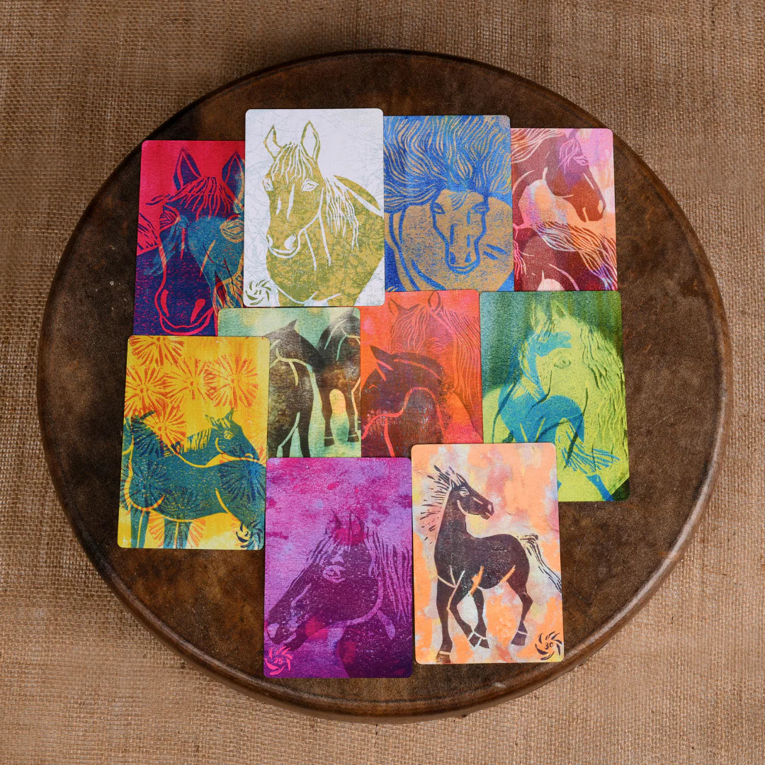 Bless the Horses is a limited edition art deck. A lifetime passion project and also a way of expressing my gratitude to horses as a species. It has taken years to pull all the layers and details of this deck together with patience and the help of the earthy blessings of the horses themselves.